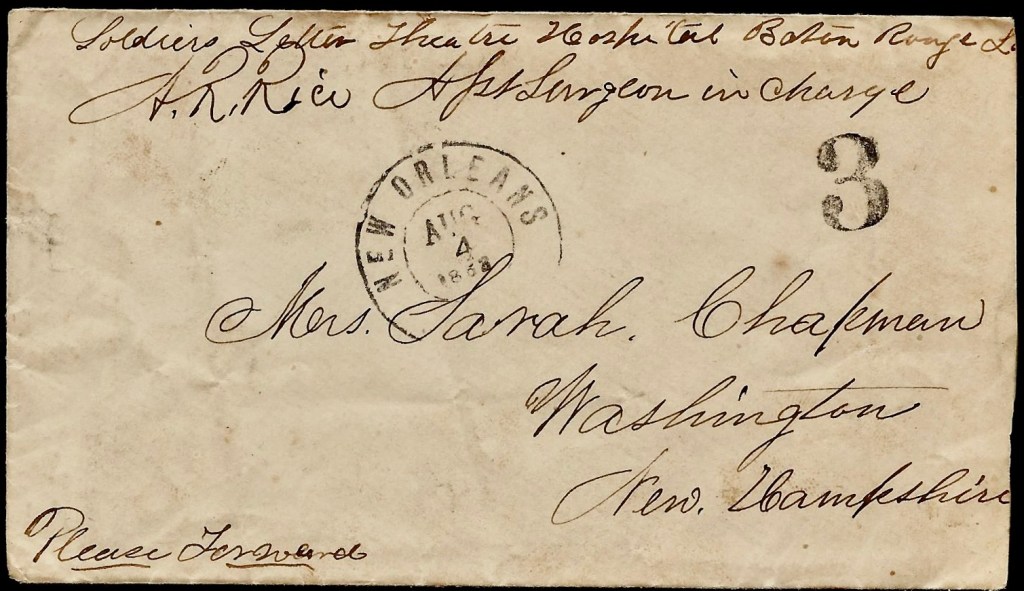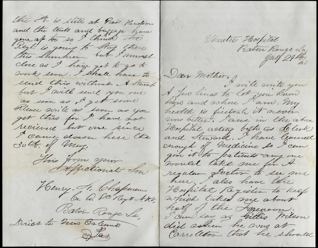 This from your affectionate son, — Henry N. Chapman, Co. A, 8th Regt. N. V. V., Baton Rouge, La.