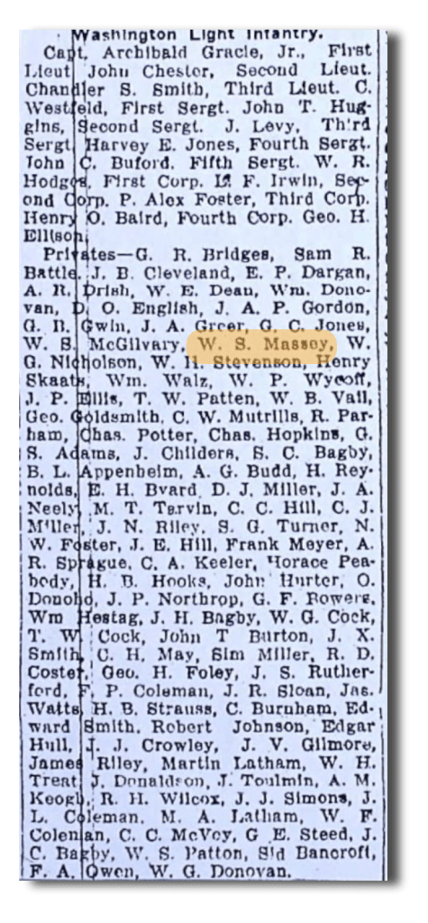 Wright is carried in Confederate muster roll records as “W. S. Massey.” He served as a private in Co. E (“Washington Light Infantry”), 3rd Alabama Infantry. This regiment had a long history with Lee’s Army of Northern Virginia, fighting in most of the major battles in the eastern theatre in Rode’s Division of Stonewall Jackson’s Corps. In 1863 and part of 1864, Wright was detached from the regiment and assigned to duty in Richmond with Major James S. Milligan’s Signal Corps. In the fall of 1864, Wright was still with the Signal Corps but reassigned to Mobile, Alabama. It’s not clear if Wright was still detached to the Signal Corps when he wrote his letter in January 1865 or whether he had been transferred to the 1st Alabama Artillery as the Lt. Colonel of that regiment indicated in February 1863 that he would gladly accept Wright into his command.