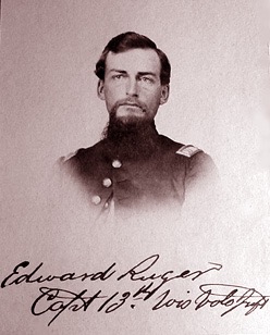Ruger joined the 13th Wisconsin Infantry in October 1861 and was elected Captain of Company A. He was assigned to the General’s staff shortly thereafter at which time he was appointed an engineer. He was discharged from the service on November 19, 1864. Although his military records don’t support it, Ruger may have stayed on government payroll as the superintendent of the topographical engineers for the Army of the Cumberland for as late as October 1867. He had returned to to Rock, Wisconsin before 1870 and went back to civilian surveying. His affiliation with the military and government were terminated at that point.