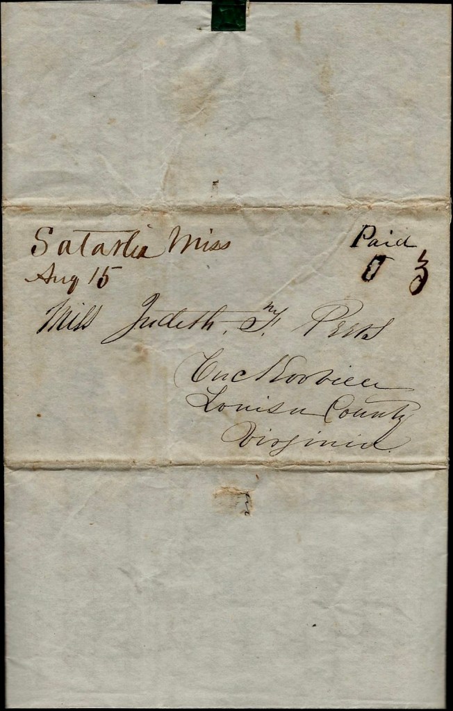 The following letter was written by William N. Alexander Peers, the son of Thomas Peers Jr. and Elly Parsons, both of whom were also from Louisa, Virginia. He married Sarah Ann Sturdivant about 1838 in Mechanicsburg, Yazoo County, Mississippi. They had four children born to their marriage. Sarah Ann died at the birth of their last child, William Henry Peers, born about 1815, Louisa, Louisa, Virginia. William died on 20 November 1855, Yazoo, Mississippi. William was a planter in Yazoo county and of course owned many slaves.
