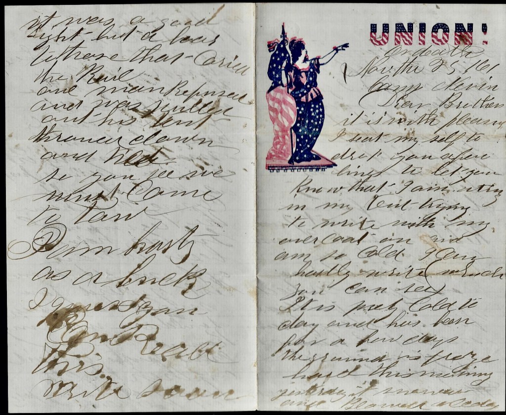The letter was datelined from Camp Nevin which was located some ten miles south of Elizabethtown, Kentucky. Camp Nevin was the advance position of the Union army in November 1861 where US General Alexander McCook had his headquarters. His army, the 2nd Division, Army of the Ohio, consisted of numerous regiments, including several from Ohio, Pennsylvania, and Indiana—including the 30th Indiana.