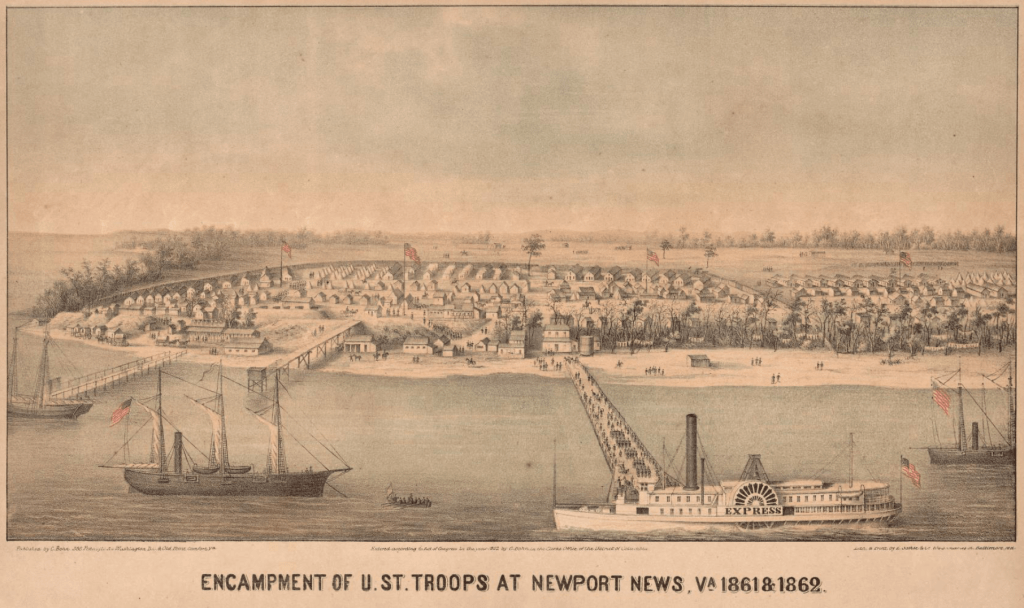 Yesterday we didn’t have any drill and so Co. K all went out and played ball and then in the afternoon, George Atkins and I went down to see a horse race about a mile and we had a pretty good time. This George Atkins that I’m tell you about is deaf and dumb Atkins that lives in Stafford the time we did. I wrote a letter to you with the picture of Newport News on the top of the page and I wrote one to Fannie too. Please write what you think about it and if you see Fannie, tell her to write too. You can’t tell much by it by that one for it was taken when the troops was here before, but I will get a large one for 25 cents that looks just as it does now and you can see the barracks which we are in too. And I will write over the top of it so that you can see what kind of a place it is.