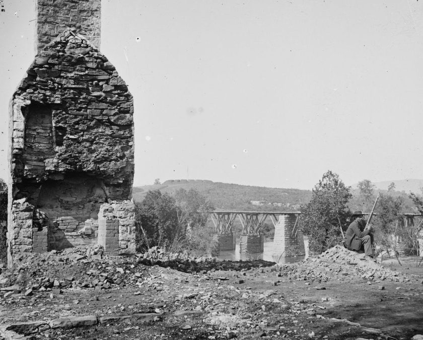 Bivouac near Fredericksburg, Saturday, Nov. 29th 1862—Today our regiment has moved down near the river to support a battery. We are close to the railroad bridge that crosses the Rappahannock and close by the side of the railroad.
