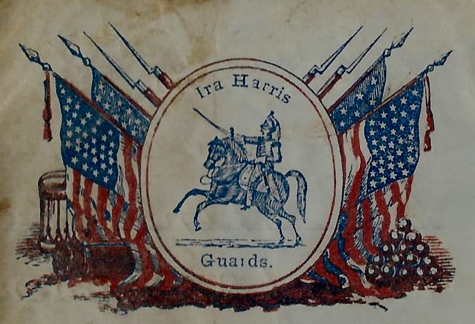The 5th New York Cavalry Regiment, also known as the 5th Regiment New York Volunteer Cavalry, and nicknamed the “1st Ira Harris Guards“, had a good fighting reputation, and had important roles in the Battle of Hanover and the Battle of the Wilderness. It was present at nearly 175 battles and skirmishes, including Gettysburg, Opequon, and Cedar Creek. A majority of its fighting was in Virginia. The regiment was originally called the Ira Harris Guard in honor of the senator from Albany, New York. It was named 5th New York Cavalry on November 14, 1861. The regiment’s battle flag was blue with “painted inscriptions and a semi-elliptical red shield in the center” inscribed with “5th.”