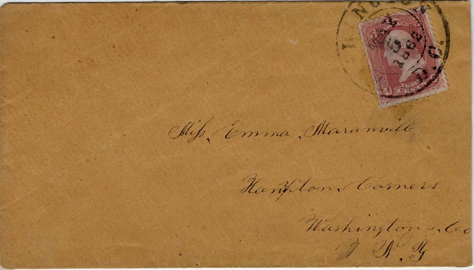 The following letters were written by Rollin E. Maranville (1836-1862) who enlisted at the age of 24 on 21 August 1861 at Fairhaven to serve as a private in Co. F, 2nd New York Cavalry, unofficially known as the “Harris Light Cavalry.” He was appointed a corporal sometime prior to his death on 13 September 1862, at the General Hospital in Alexandria, Virginia of wounds received 29 August 1862 in the Second Battle of Bull Run. His grave marker in East Poultney, Rutland county, Vermont states that he served as “Color Sergeant” of Harris Light Cavalry and “lost leg at Bull Run.” He was the son of Merit Lily DeMaranville and Mary Ann Reed.