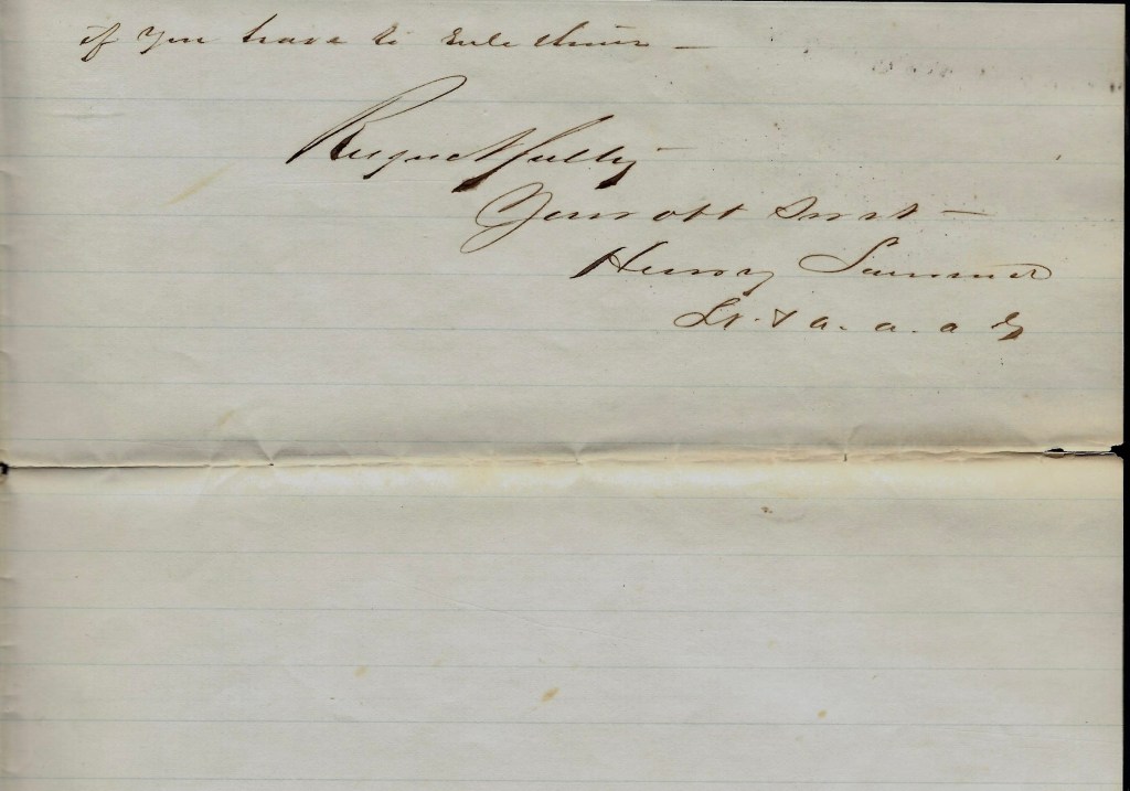 I believe the following message was penned by Lt. Henry Laurence but I was unable to identify him more specifically. It was written to Major Matthias S. Euen of the 156th New York Infantry which was assigned to duty in the Department of Georgia until mustered out of service in late October 1865 at Augusta.
