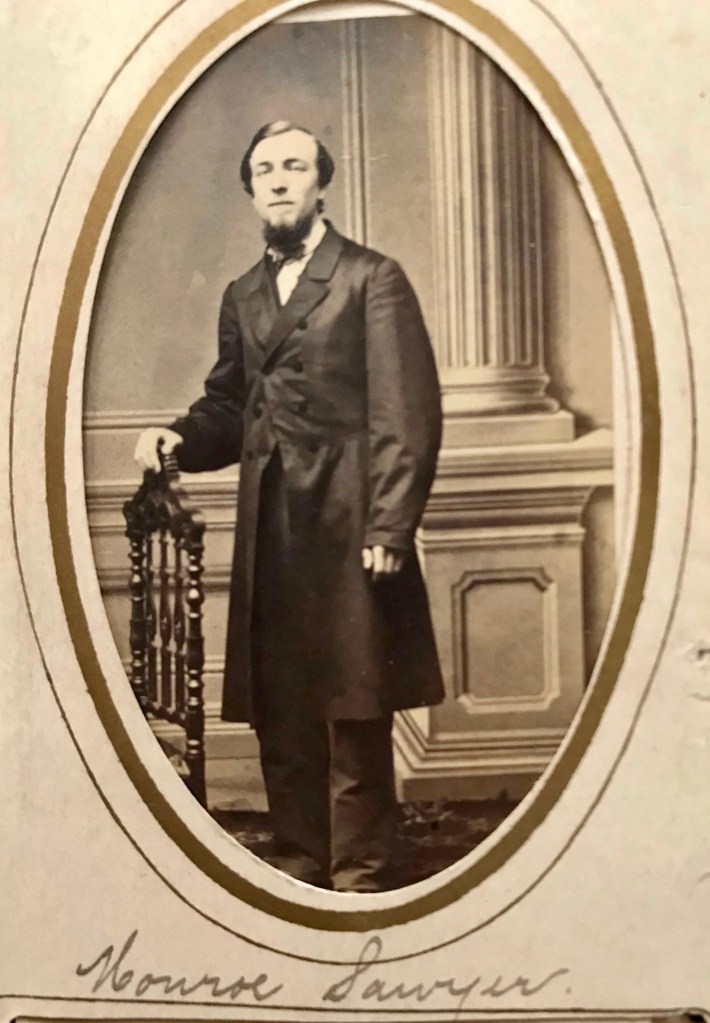 Otis and Monroe (who were both called by their middle names) had a younger sister named Lucy Ann Sawyer (1845-1900) who married George Henry Foster (1844-1906) of Cambridge. Lucy’s first-born, Lilliam Monroe Foster (1867-1945) kept a family photo album that included the pictures below of her mother and two uncles, Otis and Monroe.