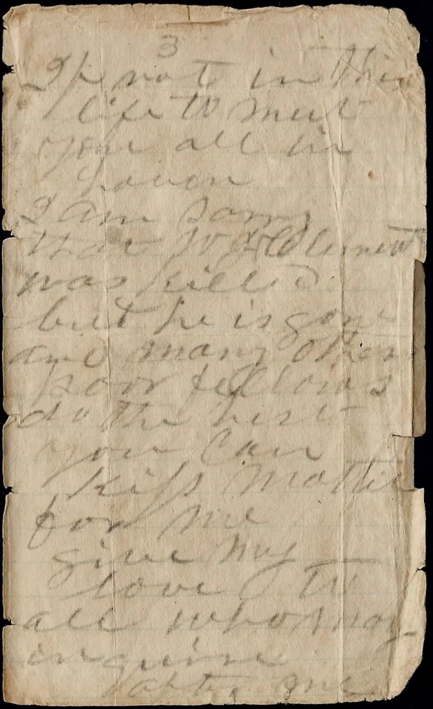I am sorry that W. J. Clements 1 was killed but he is gone and many other poor fellows. Do the best you can. Kiss mother for me. Give my love to all who may inquire after me.