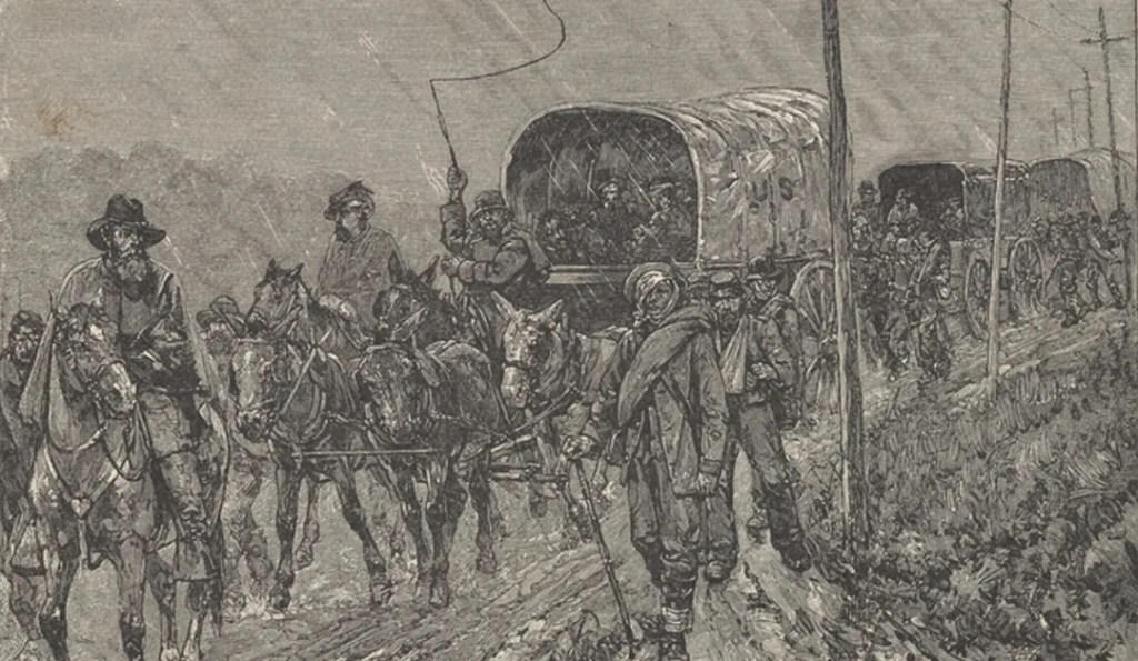 This illustration depicts the Confederate Retreat from Gettysburg. Image Source: New York Public Library Digital Collections.