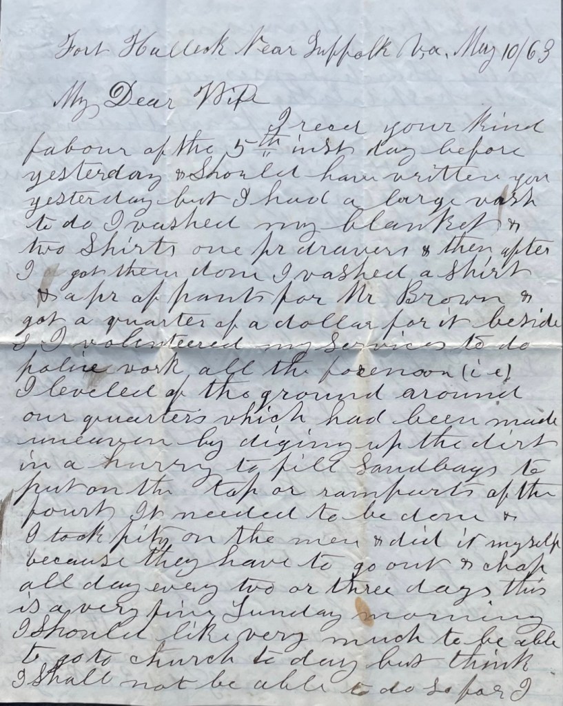 When Isaac wrote the following letter from Fort Halleck (near Suffolk, Va.) in May 1863, he was still a corporal in Co. B.