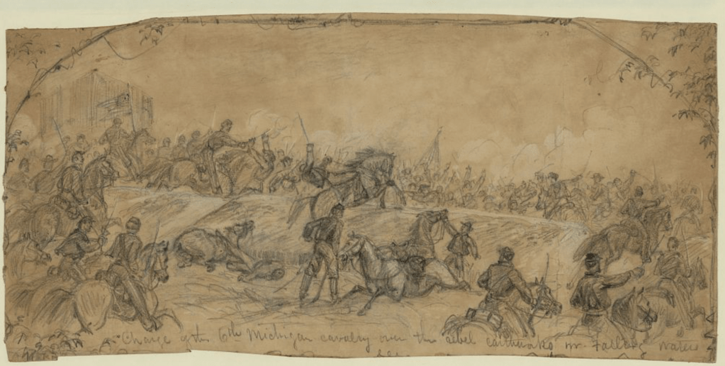 The 6th Michigan Cavalry mustered into service in October 1862 and saw duty in the defenses of Washington until June 1863. Their first action came in the Gettysburg campaign. While in Washington during the winter of 62-63, they served as body guard and escort to General Casey, as stated in the letter.