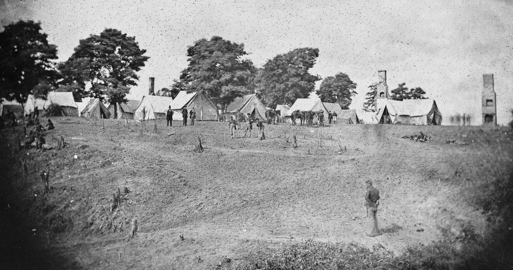 On last Friday at 3 o’clock we went on board of the Dictator and run down the Potomac to Fortress Monroe. There we run up the James River to City Point. We seen the ruins of Jamestown and the place where Pocahontas saved Capt. Smith. We seen the rebel Florida; we seen four river monitors and a great many other ironsides. City Point is formed by the Appomattox river emptying into the James. We have heard cannonading every day but not so heavy until today. It was pretty heavy I think you will hear of a heavy battle before long. There was a train of artillery passed out by our place about half mile long.