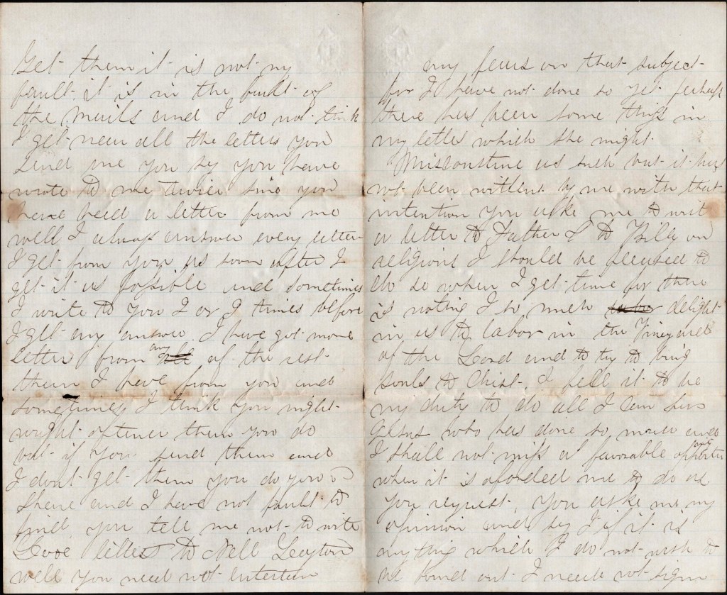 How are you. Do you mean to write to me or don’t you. Henett has written to me twice and told you were going to write but I have [not] seen anything in the shape of a letter from you yet. You must write to me soon and relieve my anxiety. How do I know but what you have went a fishing and caught a whale and he has swallowed you?