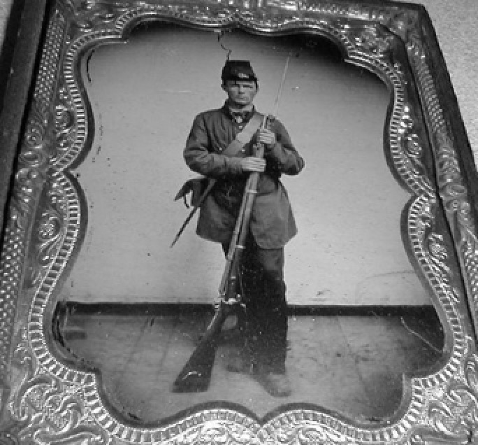 Uncle Sam has got me for three months and he may make the most of it for he will have to whistle after that. I expected to be treated half way decent but we have not been treated as well as hogs. At Bellaire we were put on open coal cars at noon and wheeled out into the sun and left there until 4 o’clock when we started. Our seats were made of rough boards. This was what we had to ride on for 240 miles. I don’t complain but thought I would tell you how it was. The smoke and cinders from the locomotive blew right on us which was enough to blind a man in 15 minutes but we tied our handkerchiefs over our heads and started and went through the darndest country that mortal man ever beheld.