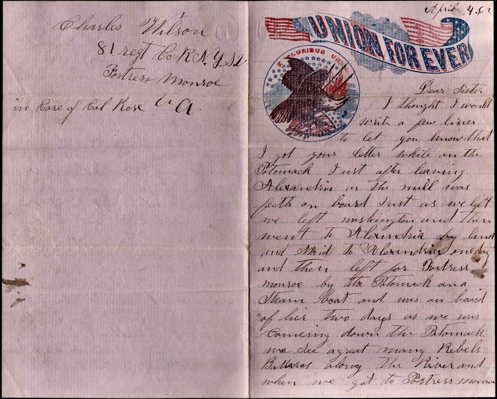 Direct as follows: Charles Wilson, 81st Regt. Co. K, N. Y. S. Infantry, Fortress Monroe, Va., in care of Col. Rose.