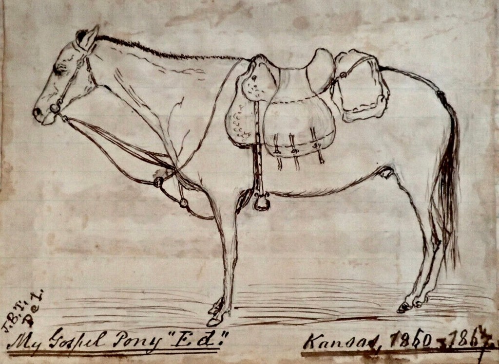I left the road and took the Sac Trail through their Reserve and for twenty miles I did not see a farm or a human being. Indians here never travel afoot, The trail is for the most part four paths, three or four feet apart, made by the Indians on ponies by traveling abreast when the Sacs and Foxes go out on a Buffalo hunt. I had never been this way before and when I reached some of their scattered houses, considerable care was needed; once I missed my way in the woods and had to retrace my steps for a quarter of a mile, and then avail myself of the yankee privilege of guessing; and remembering the course I had come and knowing the point of my destination to be about east, I made for a trail on a distant hill, but was not certain that I was right until a half an hour before sunset when I came in sight of The New Agency, a mile off, in a beautiful valley.
