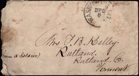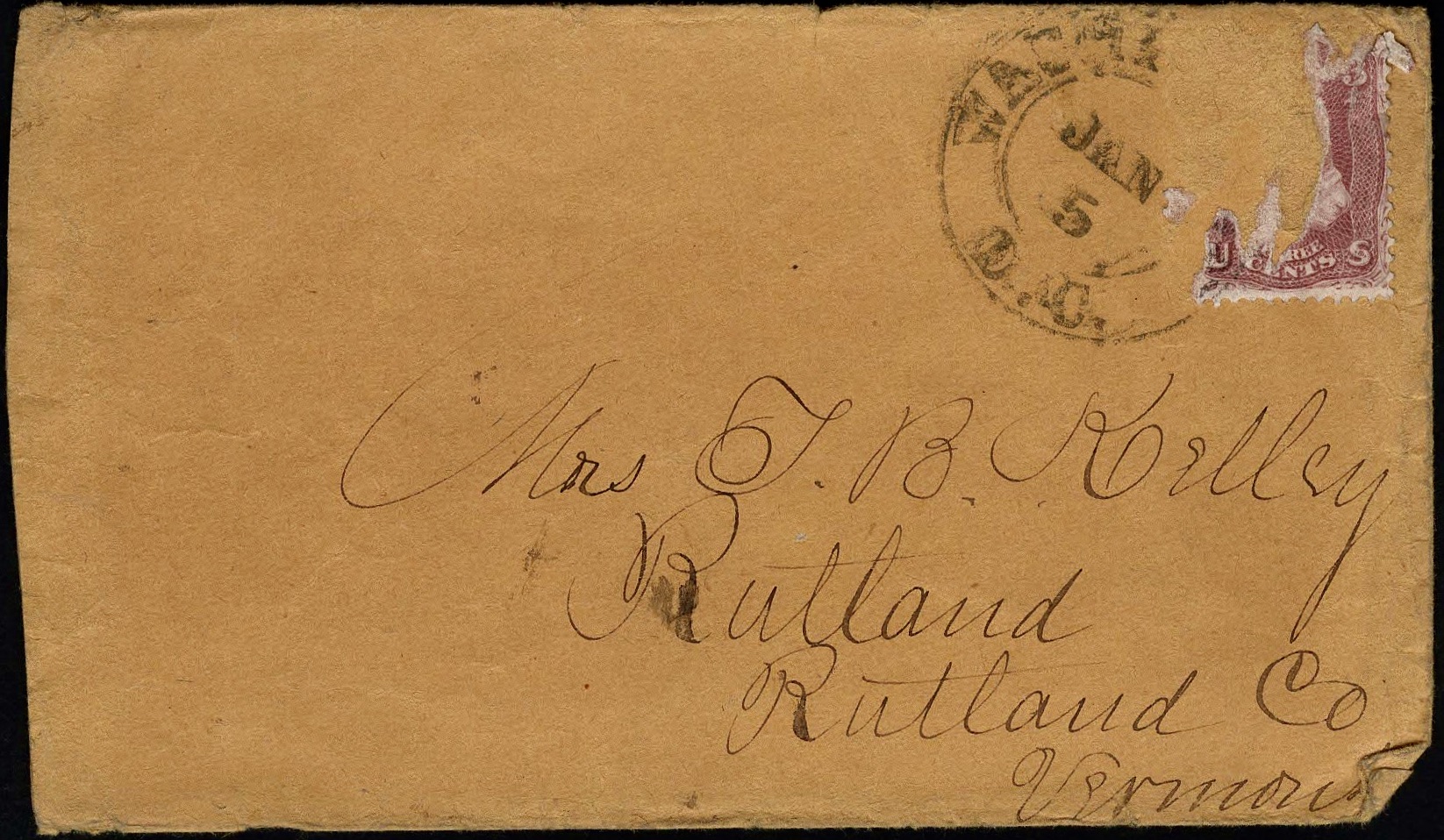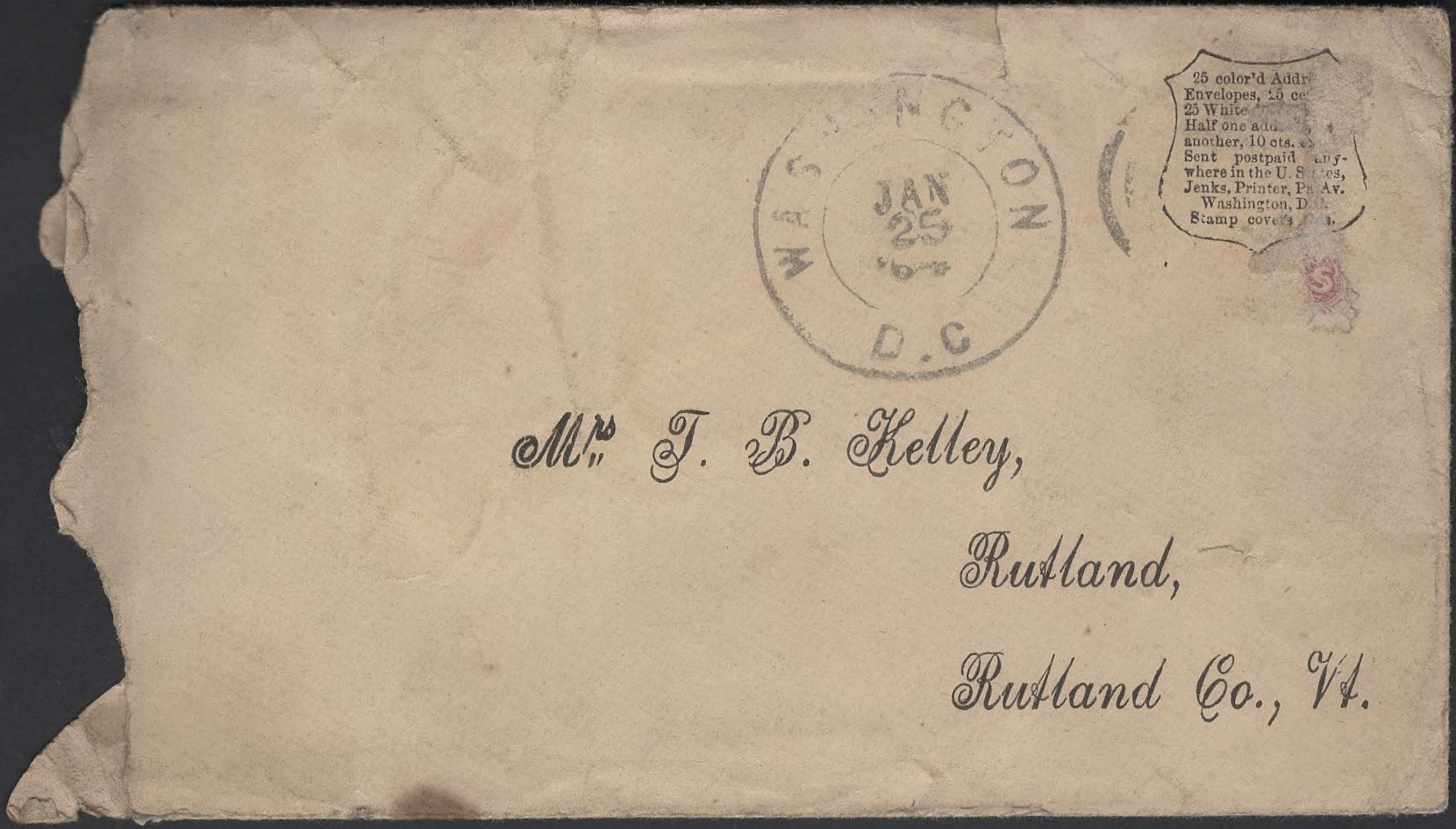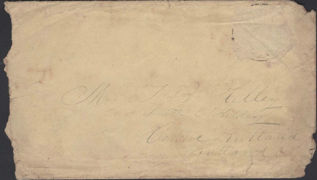 The following letters were written by Thomas Benton (“Bent”) Kelley (1838-1915), the son of David Kelley (1806-1876) and Susanna Dixon Jones (1799-1884). Bent was married to his first cousin, Mary Amelia Kelley (1838-1894), the daughter of Smith Fitzland Kelley (1816-1906) and Seviah Round of Danby, Rutland county, Vermont.