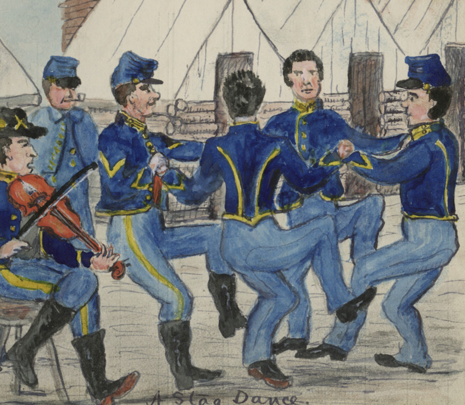 Mary, you would laugh if you was to happen in our camp near meal time. Every tent in our company (which is 9) cooks their own fodder. It is dealt out to them in the raw article & they cook it to suit their taste. There is 12 persons in a tent & we change around & 1 cooks 1 day & another the next day. When it comes some feller’s turn that don’t know how, he has to stand & look on & see how some one cooks that knows how until he learns.