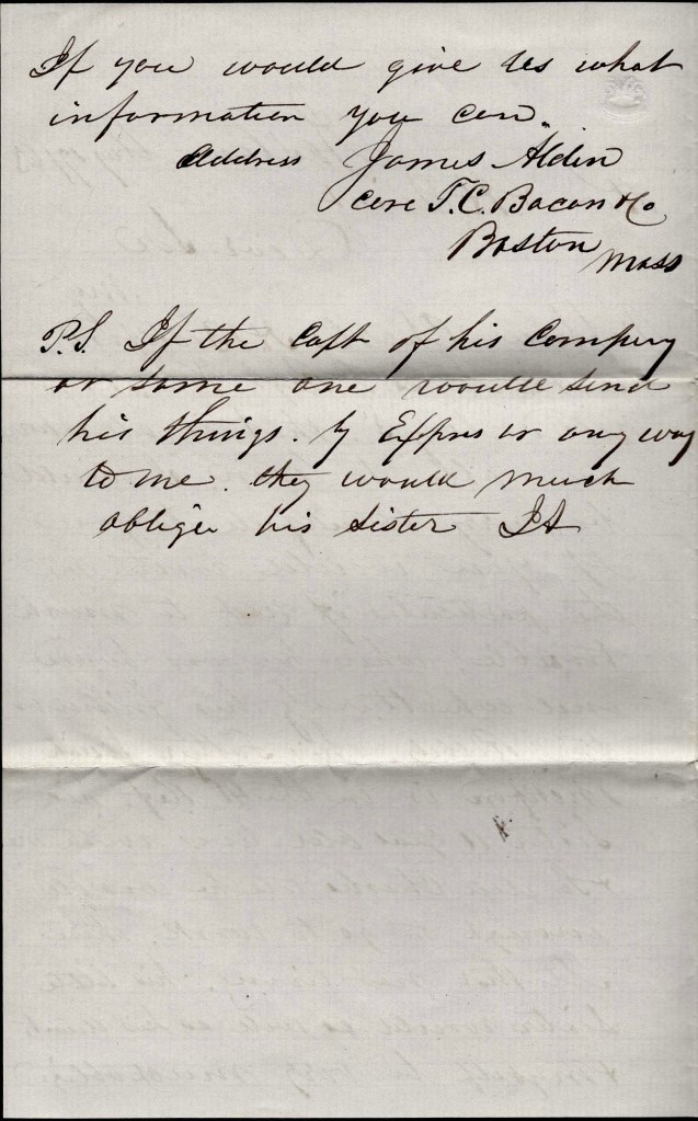 Address James Alden, care of T. C. Bacon & Co., Boston, Massachusetts