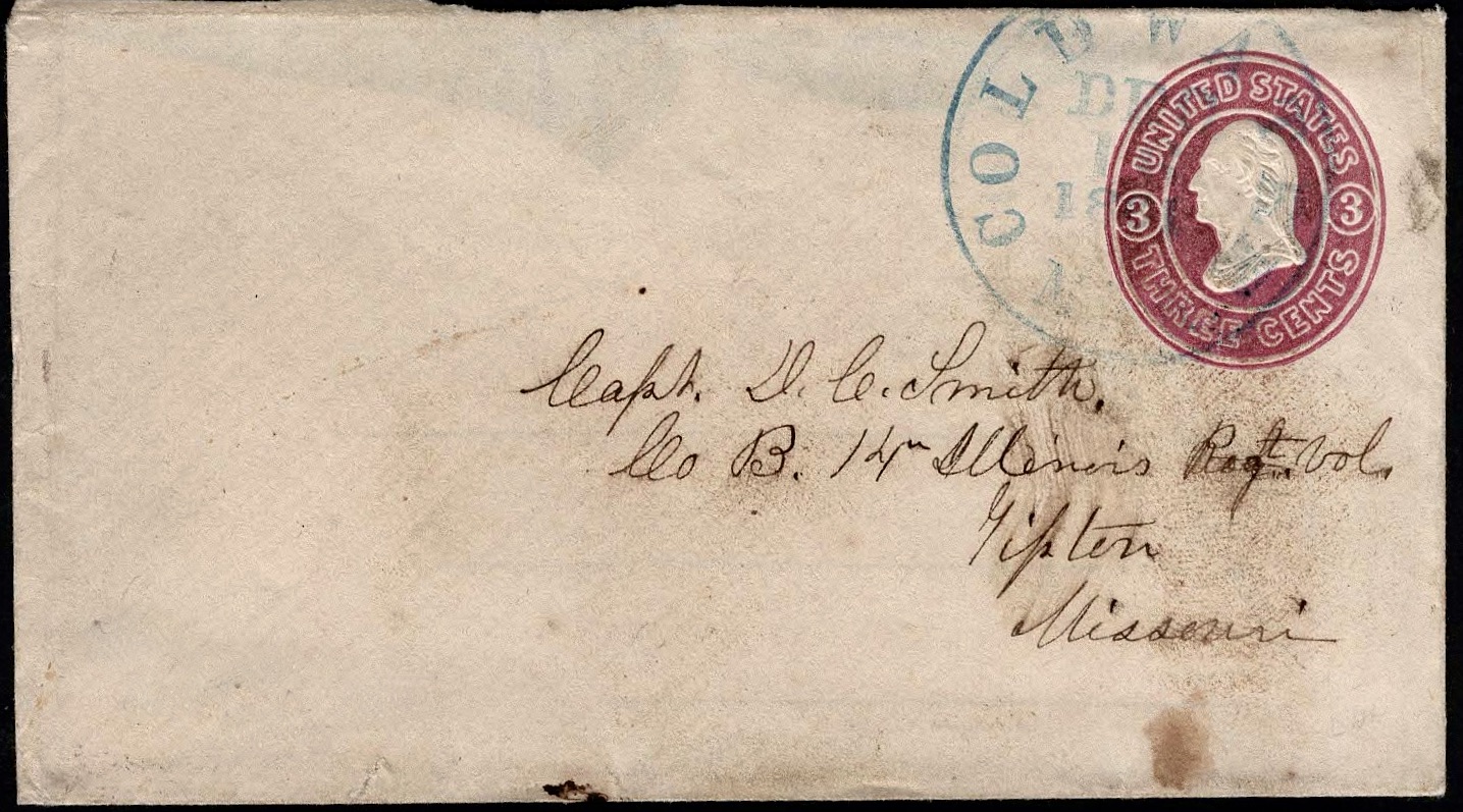 Alice wrote the letter to her cousin, Dudley Chase Smith (1833-1920), the only son of Addison Smith (1784-1846) and Nancy Fitzgerald Hicks (1801-1855) of Shelbyville, Illinois. Dudley raised a company on men in Mattoon, Illinois, and mustered in as 1st Lieutenant, later Captain of Co. B, 14th Illinois Infantry. He served from June 1861 to September 1864. Dudley did not marry until 1885 when he took Mary Bernardine Orme (1856-1931) as his wife and together they had at least seven children.