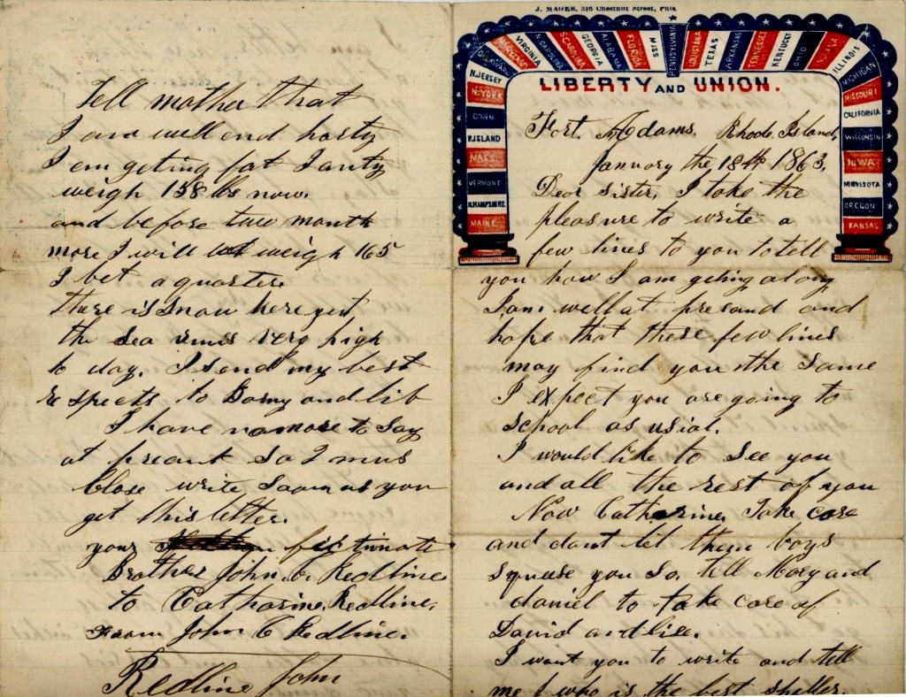 The following letters were written by John C. Redline, a 19 year-old mason from Columbia county, Pennsylvania, who enlisted in Co. E, 15th US Regular Infantry, on 22 September 1862. He died of chronic diarrhea at Chattanooga, Tennessee on 17 January 1864.