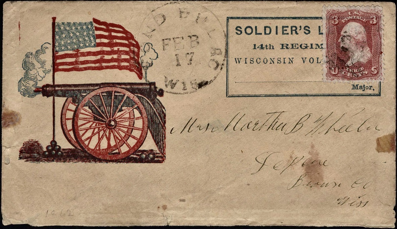 The following letter was written by Reuben Wheeler (1819-1882), the son of Charles Wheeler (1783-1843) and Lucy Winch of Natick, Massachusetts. Reuben was married in Natick in 1841 and relocated with his family to Depere, Brown county, Wisconsin, prior to 1850. In September 1861, Reuben volunteered to serve as a corporal in Co. F (“Depere Rifles”), 14th Wisconsin Infantry. This regiment was sometimes called the “Northwestern Regiment” or the “Wisconsin Regulars” for their gallantry on the battlefield. Reuben was wounded at Vicksburg on 22 May 1863 but survived and was commissioned a 2nd Lieutenant before war’s end.