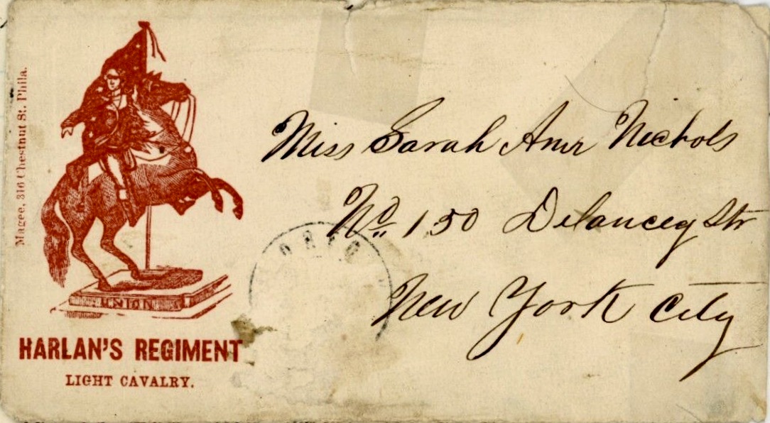This letter was written by David Nichols (b. 1829) of New York City who enlisted as a private in September 1862 to serve three years in Co. H, 1st New York Mounted Rifles. He re-enlisted in September 1864 and was transferred later to Co. K. In September 1865, the regiment was designated the 4th Provisional Cavalry. The regiment served until 1864 with the 7th and 4th corps, principally at Fortress Monroe, Norfolk, Suffolk, Portsmouth, Williamsburg and Yorktown, Va., taking part in over 50 battles and skirmishes, but sustaining no severe losses. Its heaviest casualties being at Scott’s mills, Va., in May, 1863, when 28 were killed, wounded and missing.