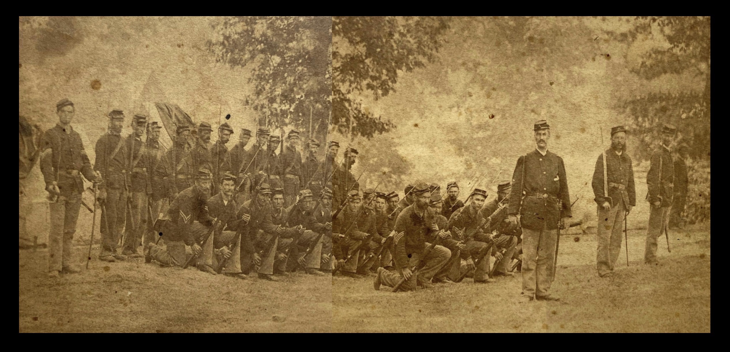 Well, Mattie, all things in camp are almost as still as the tomb. All the Boys left here on the morning of the 14th inst. bound for Columbus. Mart and Solomon Robinson was left behind on the account of our health. I intend to rejoin my company tomorrow if Mart will continue to mend. The ground is covered with snow. The weather is very cold. You ought to saw the Boys when they left here. There was 46,000 of them left in one body with their guns glittering in the sun like so many stars in the blue etherial and the stars & stripes waved over them. It was a solemn time when our kind old Colonel [John] Cook came out and addressed them with a few words to see the tear roll down the cheek of the brave old soldier when he pointed to the stars and stripes, the sweet emblem of Liberty.
