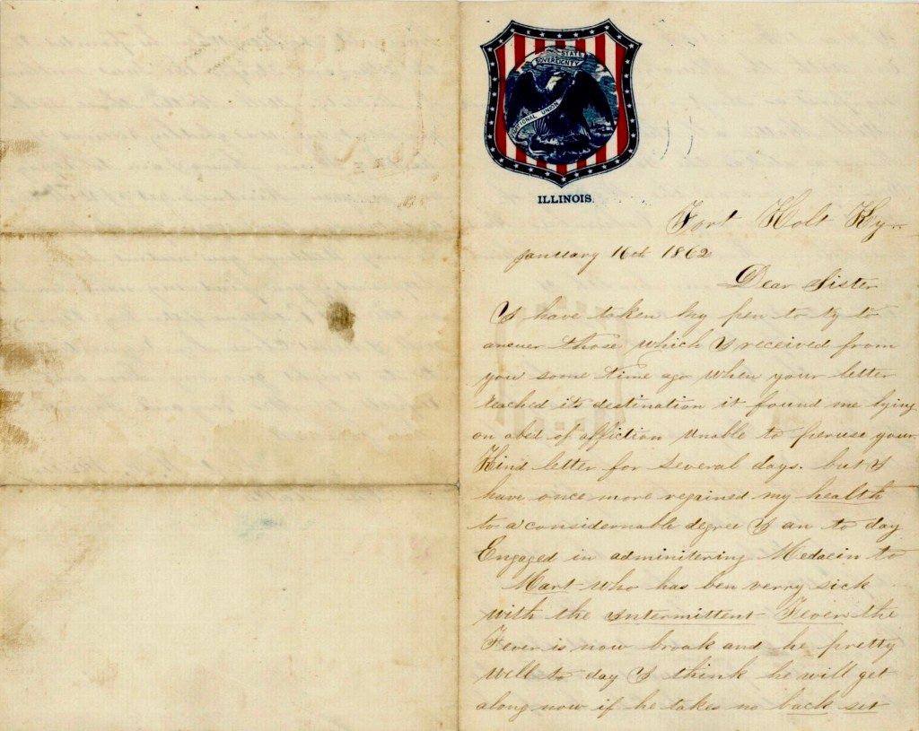 In his letter, William describes the departure of the 7th Illinois Infantry from Camp Holt with other regiments on the week-long reconnaissance of the Confederate stronghold at Columbus, Kentucky that took place from January 13th to the 20th, 1862.