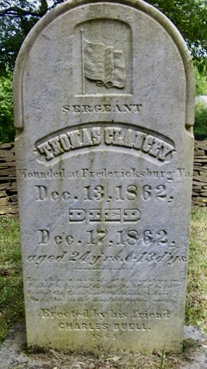 Thomas was promoted to first sergeant of his company before he was severely wounded in the Battle of Fredericksburg. He died of his wounds on 16 December 1862.