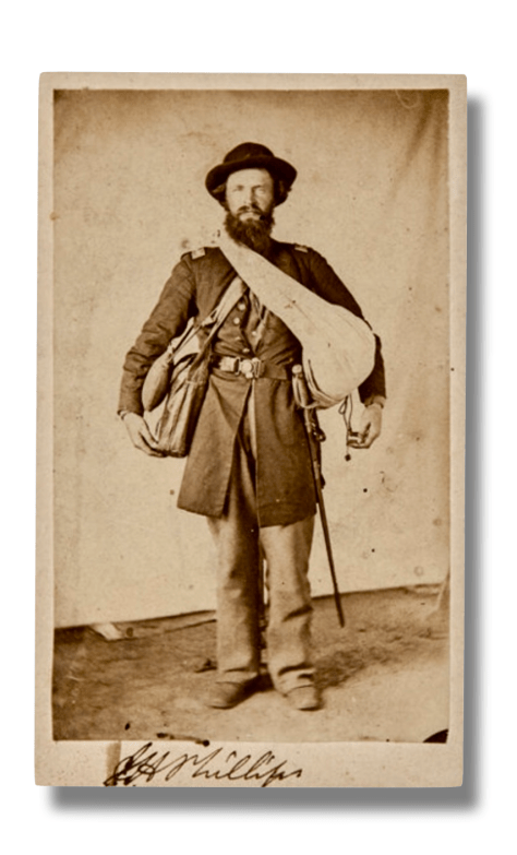 If you postpone your exhibition until the Anniversary, I hope I will be at home to attend it, as our time will be out about that time. I want you to write oftener than you have been in the habit of doing lately or I will. give you a big scoulding one of these days. Give much love to all. the folks. Your brother, — John H. Phillips, Captain Commanding Co. D, 22nd Illinois Infantry.