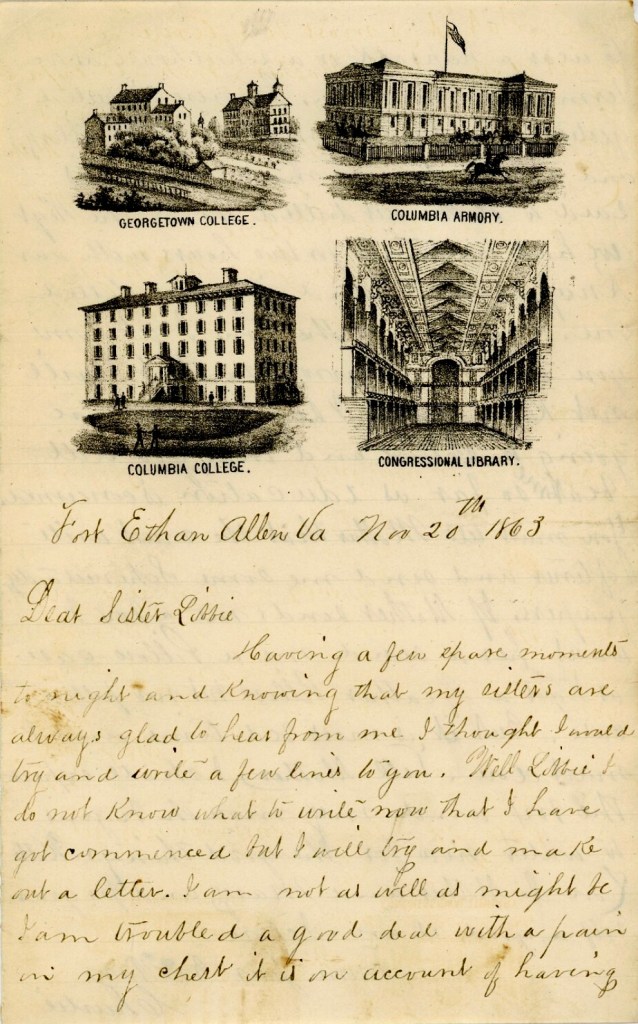 Having a few spare moments tonight and knowing that my sisters are always glad to hear from me, I thought I would try and write a few lines to you. Well, Libbie, I do not know what to write now that I have got commenced but I will try and make out a letter.