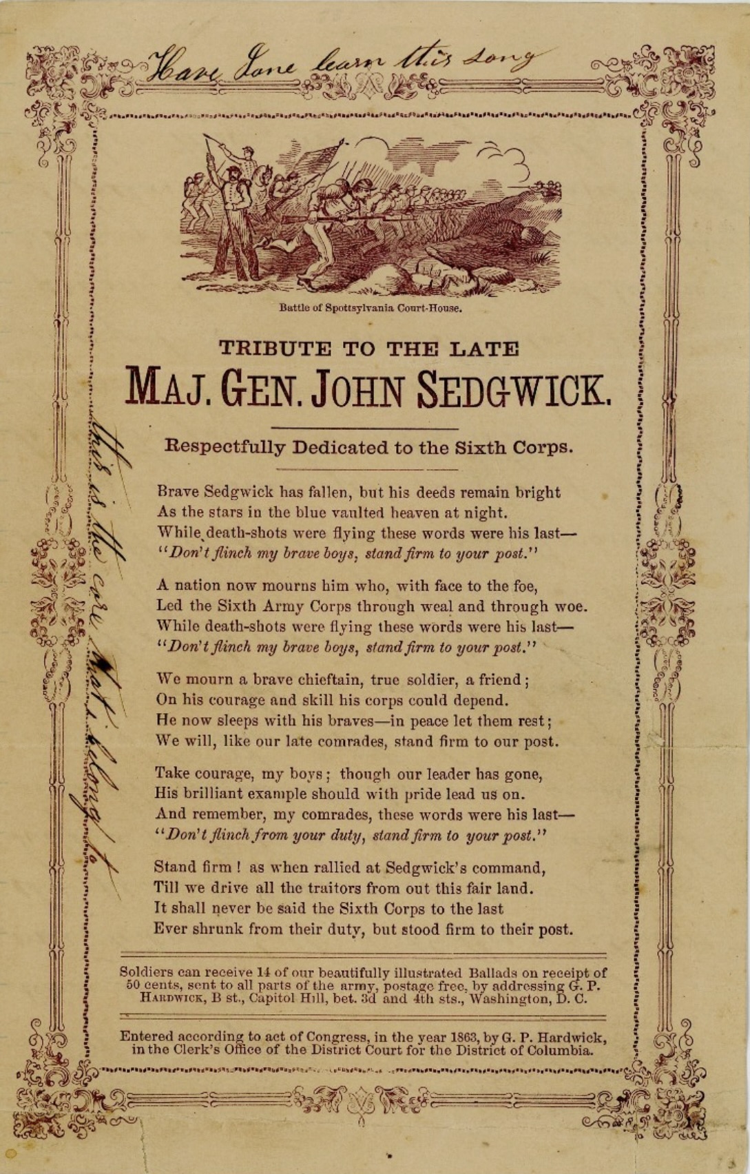I hold the same as always, blowing on that thing with the siren holes in it [bugle]. The Colonel sent for me so I had to come to the regiment. My uncle was killed a few days before I got there. That does leave me all alone. It is lonesome for me to have Charley and them all gone. The place that Charley was killed is only half a mile from here.