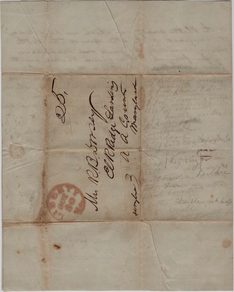 This letter was written by William H. Dorsey (1819-1854), the oldest son of Richard Brooke Dorsey (1791-1869) and Anna Elizabeth Dorsey (1800-1884) of Elk Ridge Landing, Anne Arundel county, Maryland. By 1850, Richard and Anna had relocated to Baltimore where Richard was a merchant. William was yet unmarried and living with his parents in Baltimore at that time. It is presumed that William was named after his paternal grandfather, William Hammond Dorsey. The Dorsey family were slaveholders in the 1850s and the content of the following letter gives us some notion as to their opinion of Yankees and societal preferences.