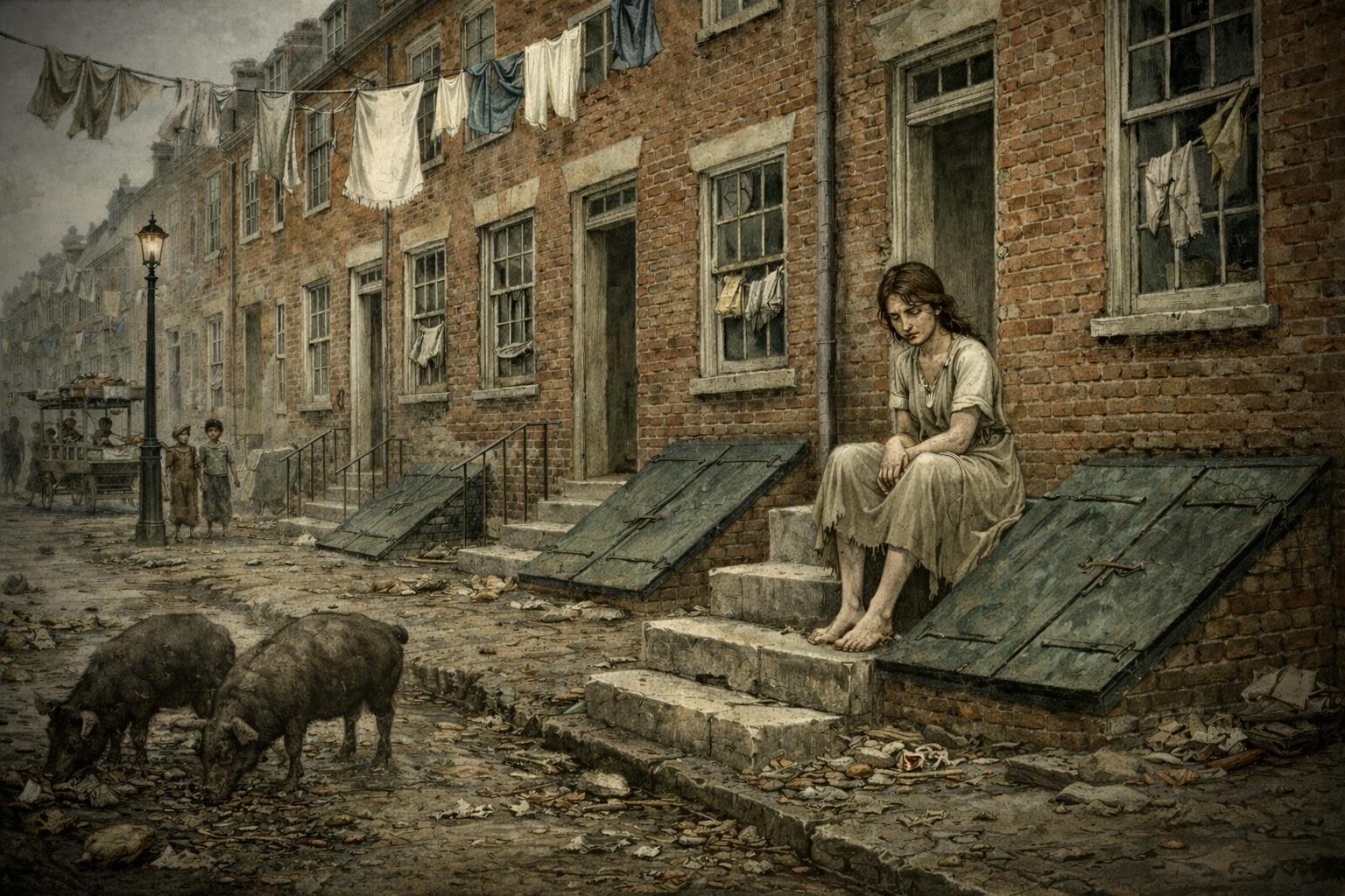 “The village of Canton—a place noted for its hogs, dirty women and children. In passing along, every now and then, you will run against a hog. You will find a plenty of them running in the streets and other public places. What would you say to see women, barefooted and ragged, sitting down on the door steps with their feet as black as the stove?”