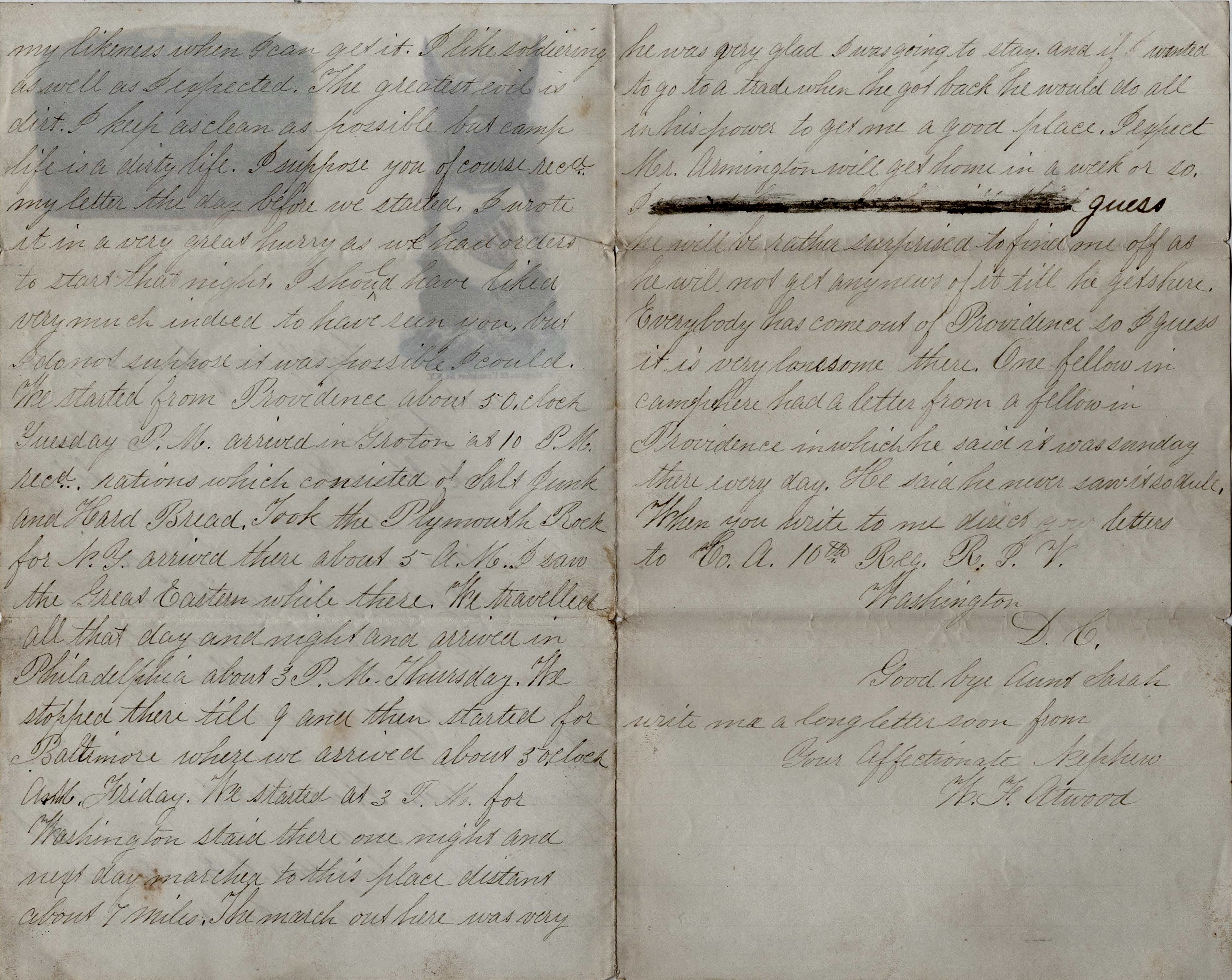 When you write to me, direct your letters to Co. A, 10th Regiment R. I. Vols., Washington D. C.,