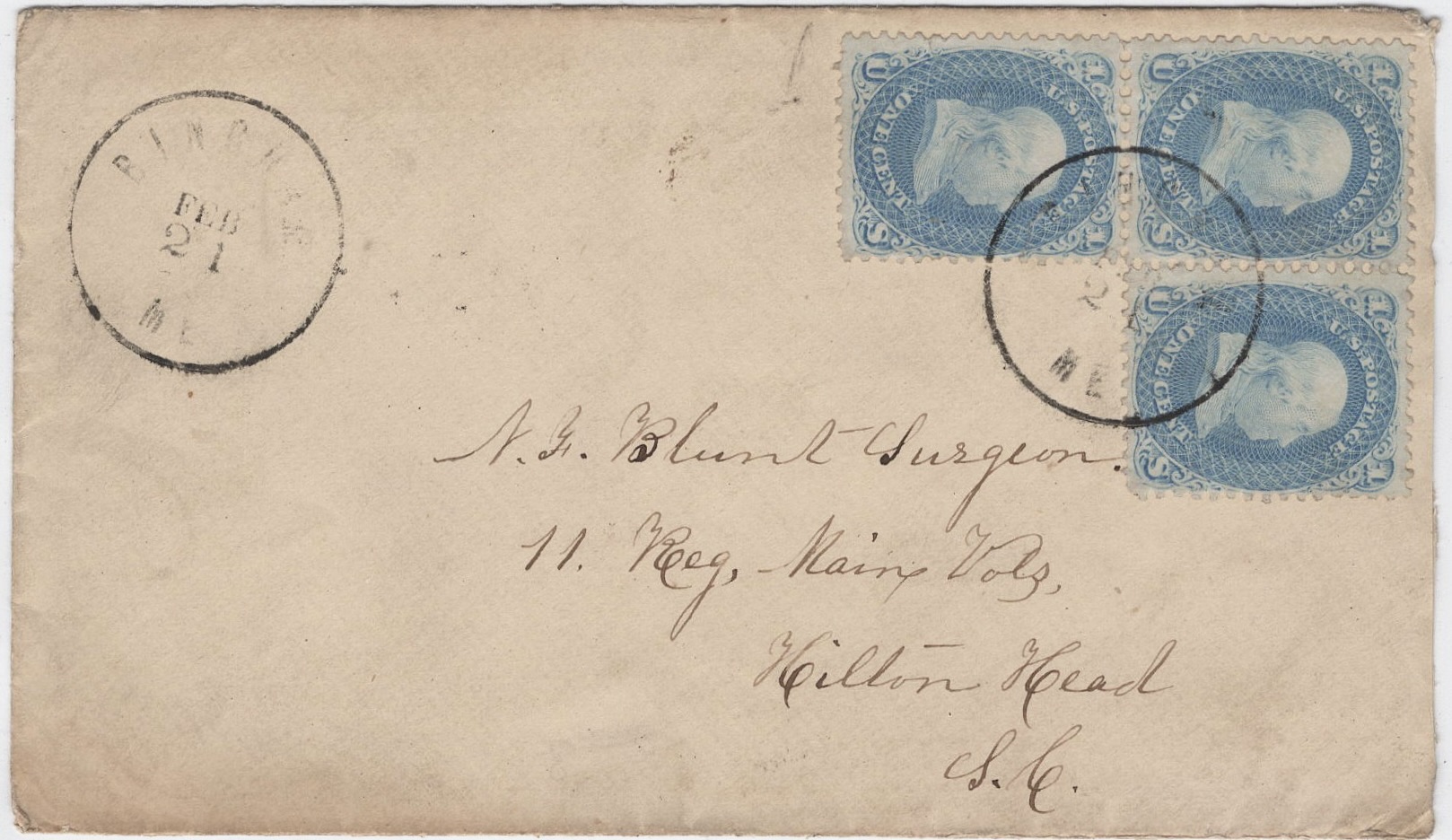 The following letter was written by Abner Coburn (1803-1885), the 30th Maine Governor. He wrote the letter at the behest of a Vassalboro constituent, Rev. James Evelyn Mills—a Baptist preacher—who had a son serving in the the 11th Maine Infantry but hospitalized in Beaufort, North Carolina, in February 1863. The letter was addressed to Dr. Nathan F. Blunt who left his practice in Bingham, Maine, to volunteer as an Army surgeon. The sick soldier was Horace Stanton Mills (1843-1923), a sergeant in Co. G, 11th Maine Infantry. Horace survived his illness and was later taken prisoner at Fort Gregg, Virginia, in April 1865 but released soon after. Some of Horace’s Civil War artifacts are on display at the North Berwick Historical Society.