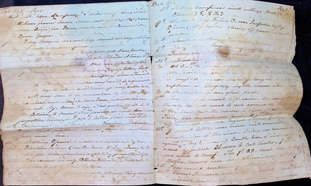 12th—Today I went to summon in witnesses for the man that I took yesterday. Have seen today’s paper which contains the news of Burnside’s Army having crossed the Rappahannock. Nothing of importance has transpired today.