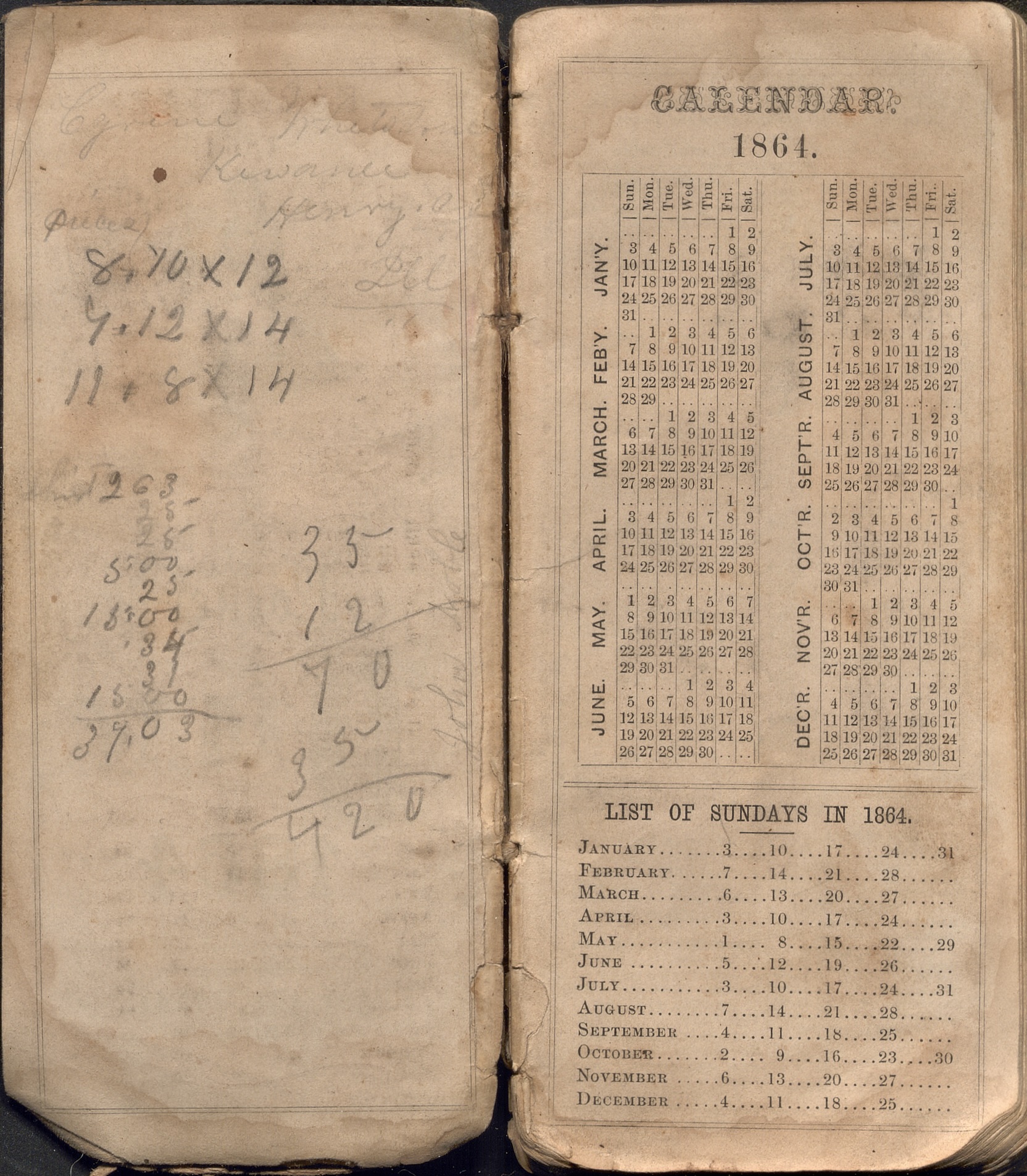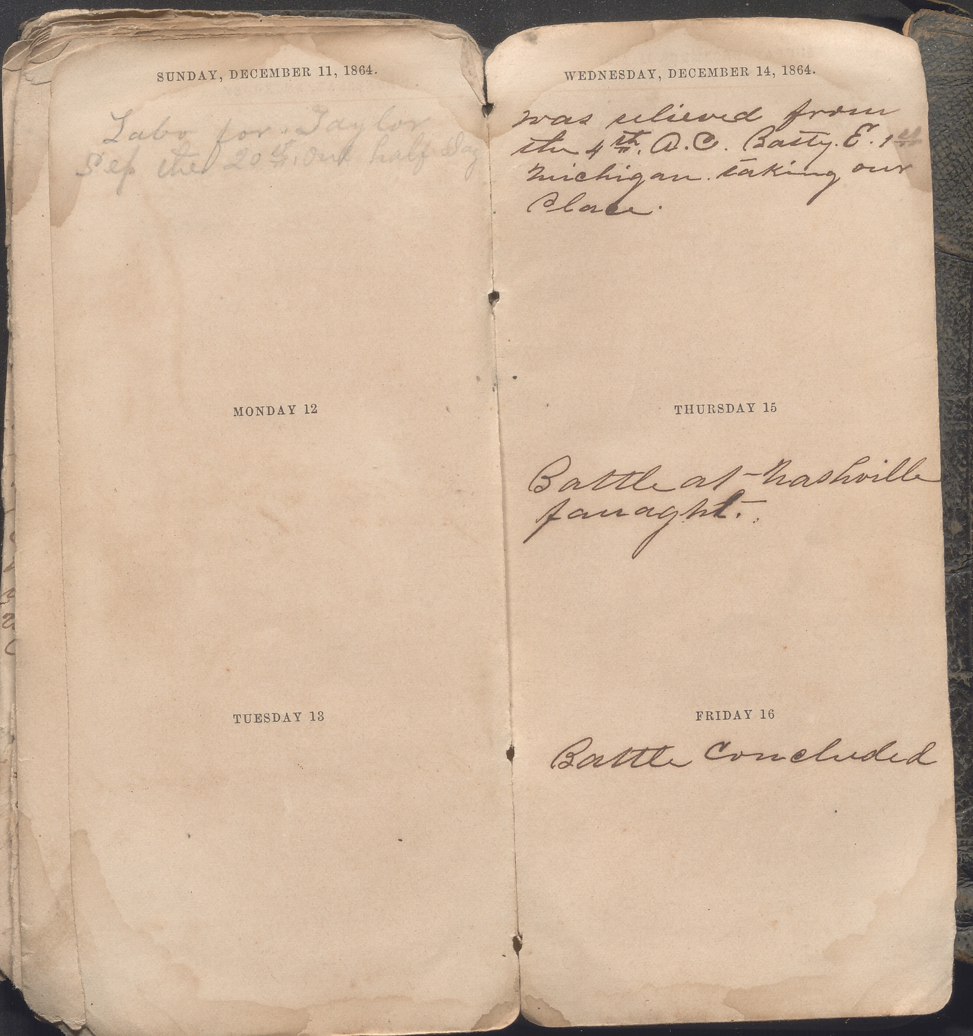 This diary spans the year 1864 with the rendezvous of the Battery at Cincinnati until after the Battle of Nashville in mid December 1864.