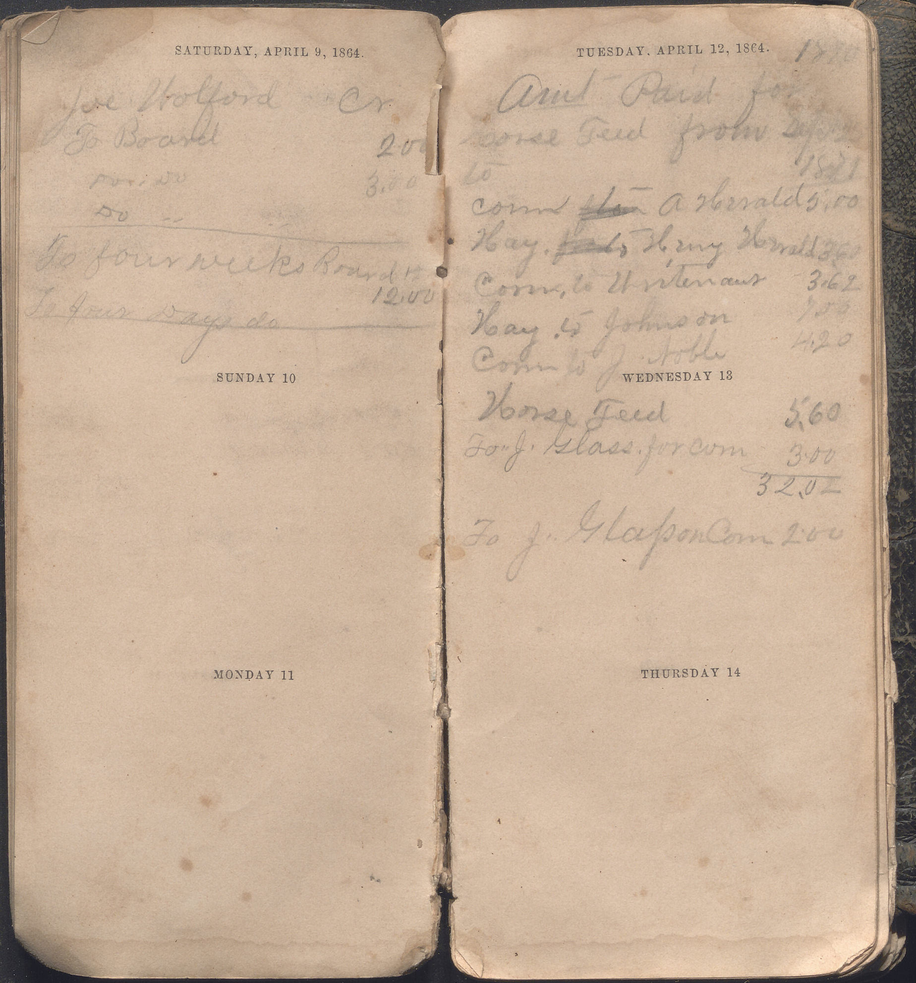 Thursday, August 11, 1864—Was out foraging today. Was very warm. Came near getting sun struck. Had green corn for supper.