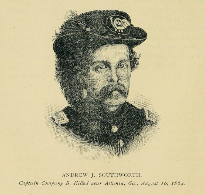 Friday, July 15, 1864—Battery still remains in camp. Jink Davis and I were to the 104th OVI. Took dinner with Captain Andrew J. Southworth [of Co. B]. Had a game of Seven Up with the Boys. Wrote a letter to Robb Crockett.