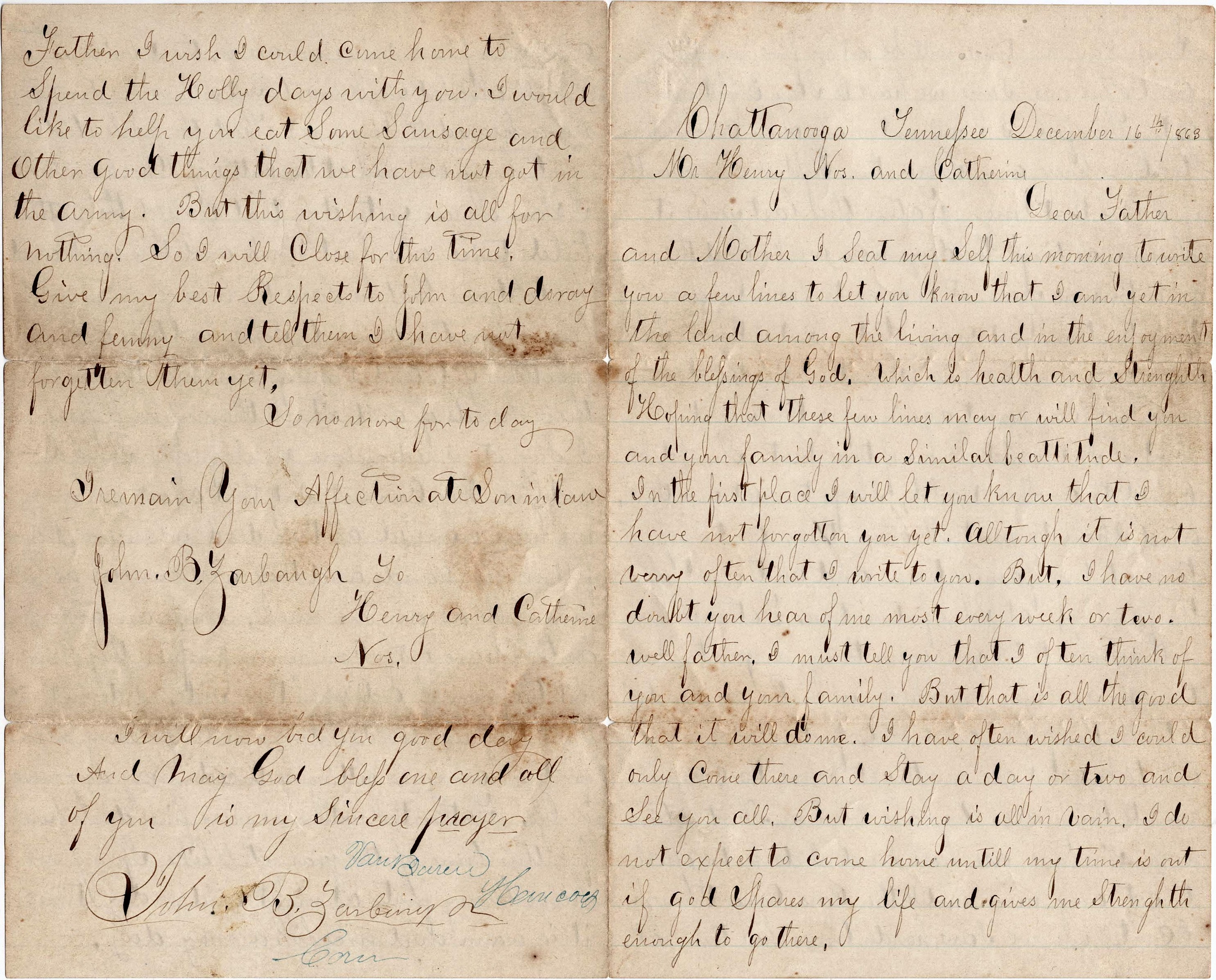 I remain your affectionate son-in-law, — John B. Zarbaugh
