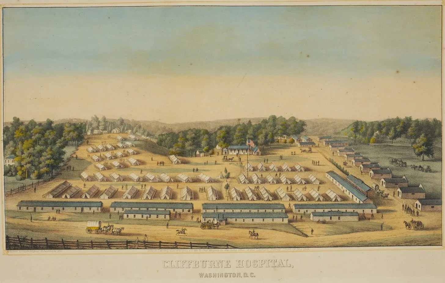 After about a year in the service, he contracted typhoid fever and was sent to Cliffburne Barracks Post Hospital (Depot Camp Invalid Corps) in Washington D. C. where he was subsequently discharged on a surgeon’s certificate in mid-December 1862. After regaining his health, George reenlisted in August 1863 at Rochester, New York, and was mustered in as a private on 10 October 1863, into Co. C, 1st New York Veteran Cavalry with his younger brother James by his side. He was mustered out on 20 July 1865 at Camp Piatt, West Virginia, after receiving promotions to corporal 7/1/1864 and sergeant 9/1/1864.