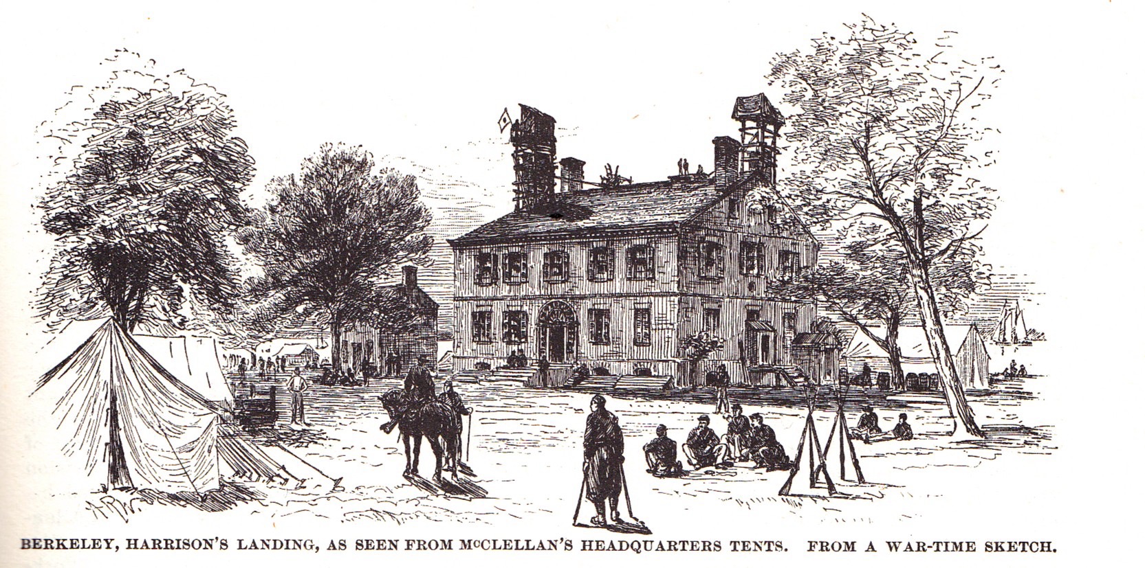 Thursday 17—Marched through the med to the old Harrison house [Berkeley Plantation] and commenced policing the ground preparatory to pitching camp. Had a letter from Lizzie.