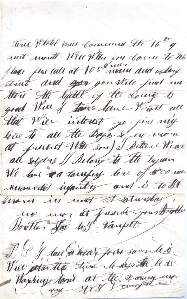 P. S. I had a letter from S___. He is well just at this time. He says he is W_____ at the [ ].