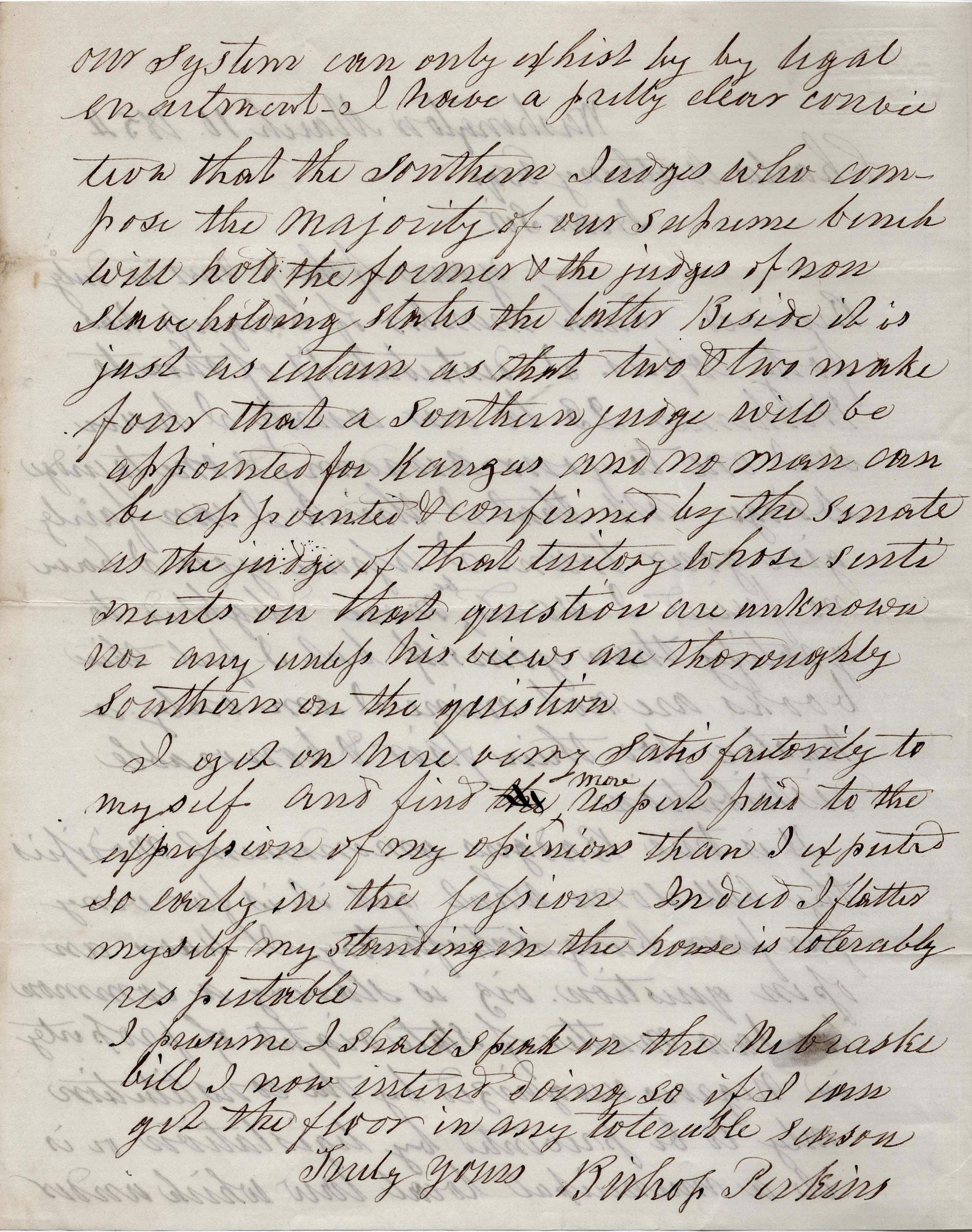 Truly yours, — Bishop Perkins
