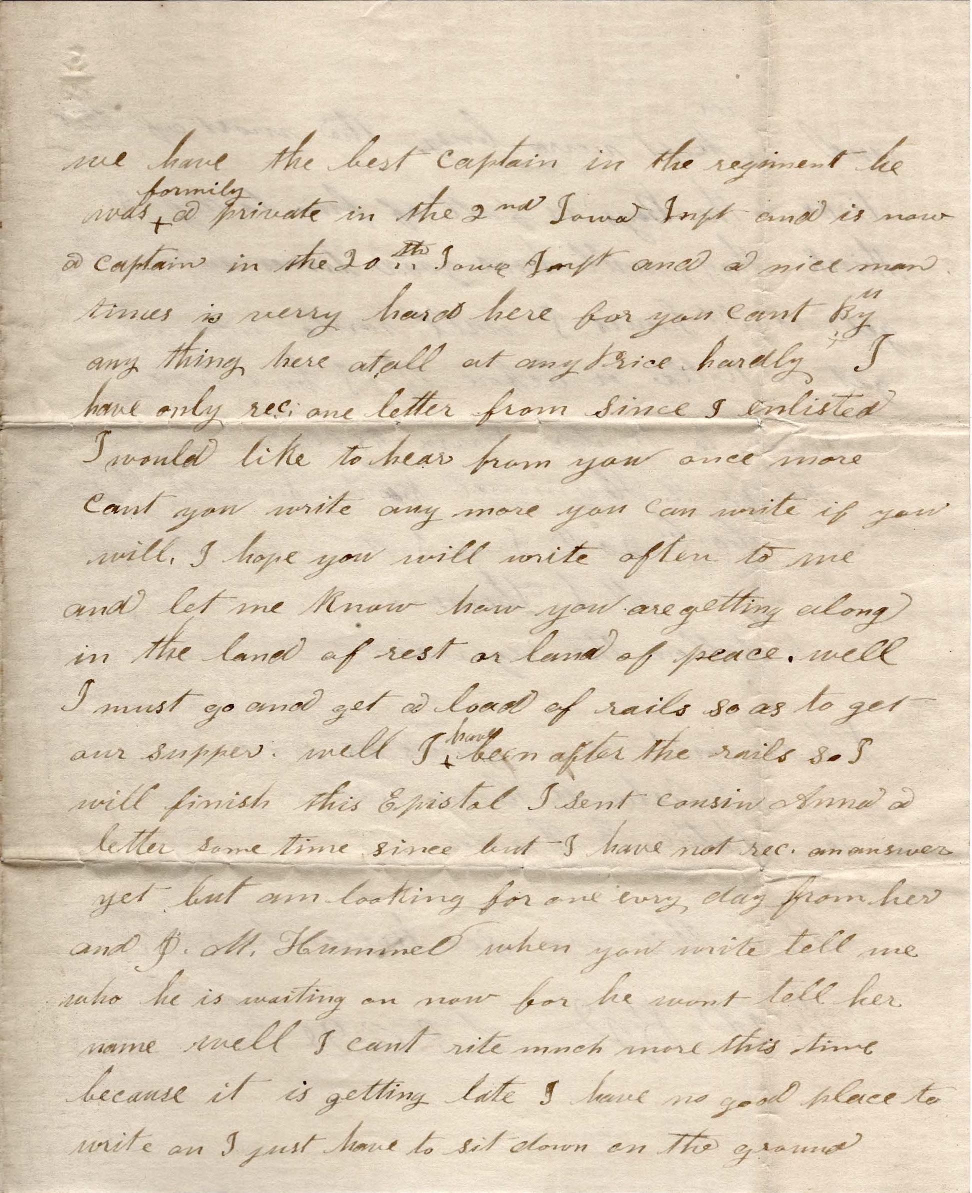We have the best captain in the regiment. He was formerly a private in the 2nd Iowa Infantry and is now a captain in the 20th Iowa Infantry and a nice man.