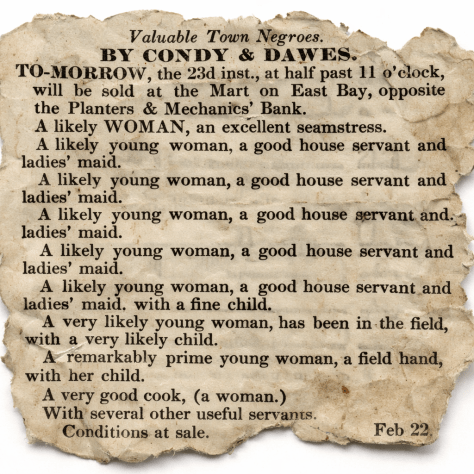 There is to be a sale of Negroes tomorrow by auction. We shall be there to see.