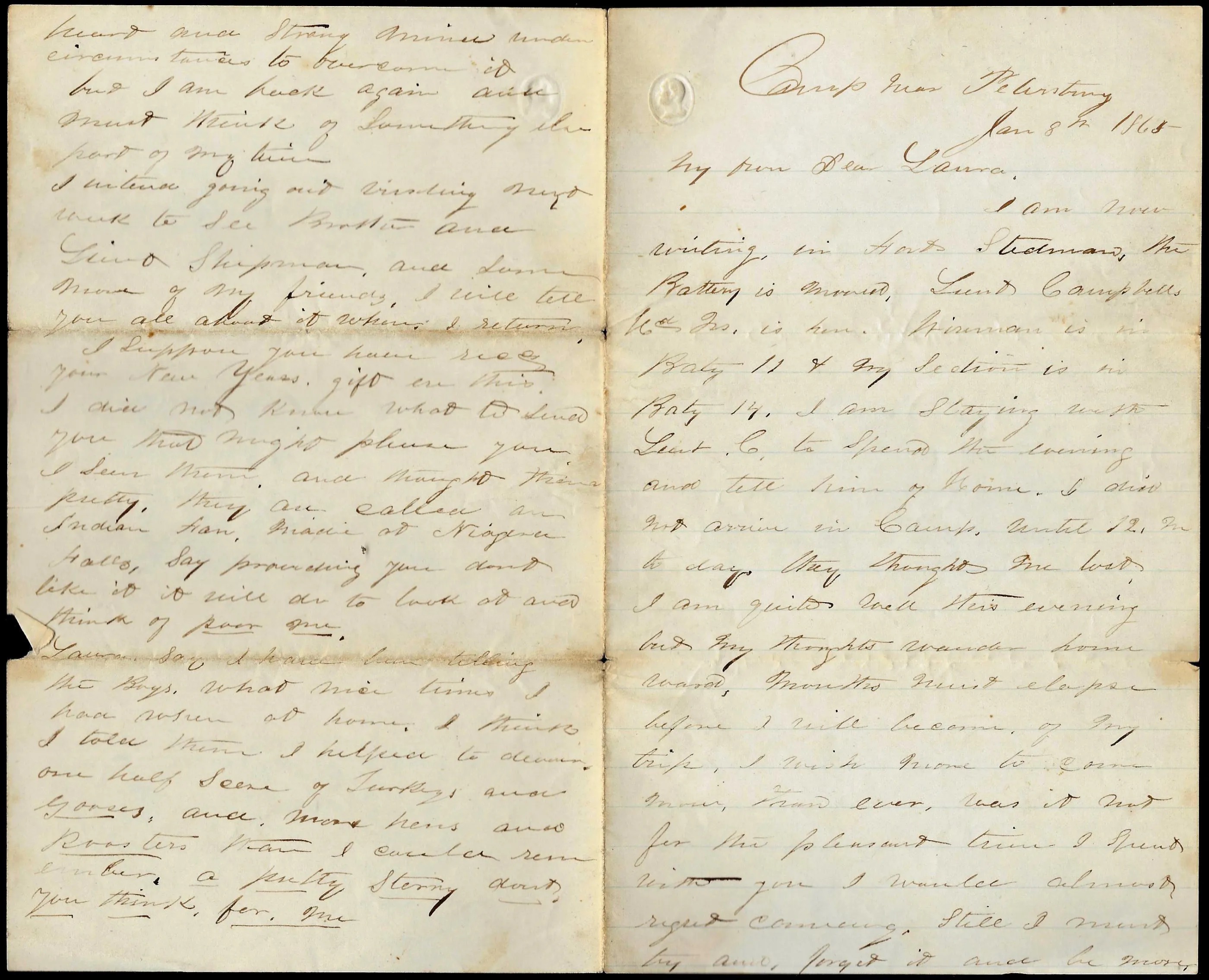 He wrote the last two letters to his fiancé, Laura Morgan (1845-1928), whom he married in 1865. Laura was the daughter of John Campbell Morgan (1818-1887) and Mary Catharine Weimer (1825-1885) of Sunbury, Northumberland county, Pennsylvania.
