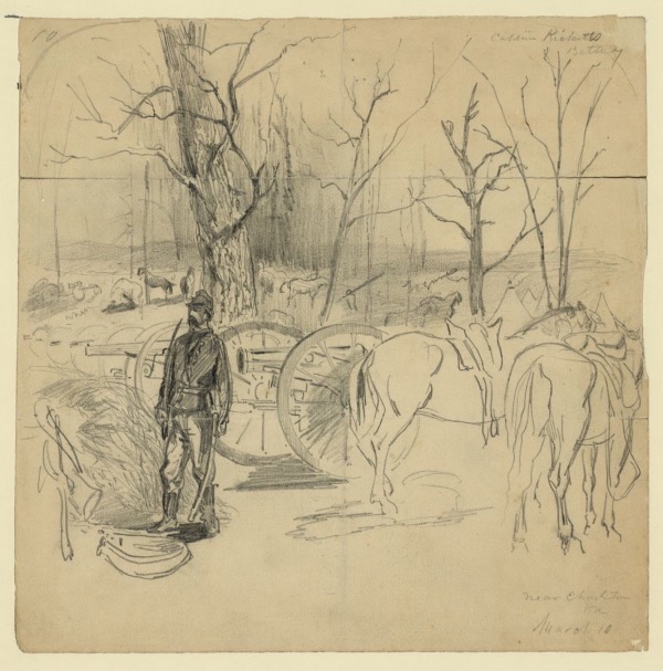 Rickett’s Battery, 1862. Sketch by Alfred Waud
